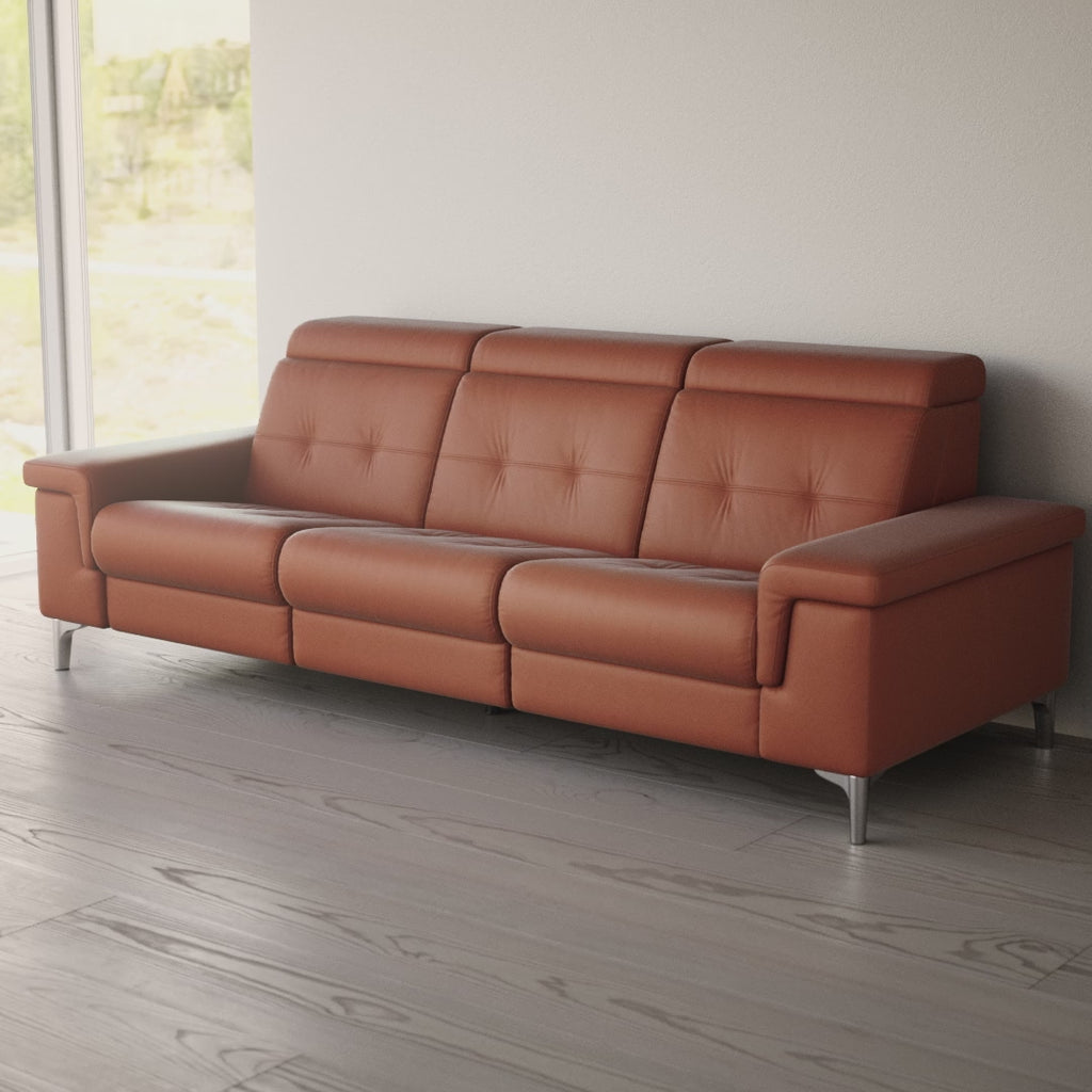 The Stressless Anna A3 Loveseat is an elegant sofa with the possibility of motorised functionalities in each seat. You can choose between a manual adjustment of the headrest or a built-in power mechanism that unfolds the integrated footrest and provides a highly elevated position of the legs - distributing the body weight more evenly for maximum relaxation. The Stressless® Anna sofa has a wide range of options for customisation of design, size, and functionality.